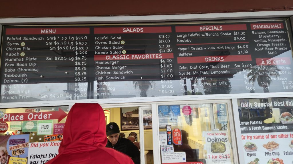 The menu at Falafel’s Drive In is designed to offer a diverse selection of Middle-Eastern dishes that cater to various tastes. Falafels are prominently featured, renowned for the crispy texture and rich flavor, which are achieved through a carefully crafted recipe. This dish is a highlight of the menu and is frequently praised by patrons. Additionally, the gyros and kabab are celebrated for the tender, flavorful meat and expertly balanced seasoning. The pita chips and onion rings are offered as popular sides, providing additional options for those seeking a variety of tastes. Fresh salads and tabbouleh are included, adding a healthy and refreshing element to the meal. The banana milkshake stands out as a unique and delightful choice, offering a creamy and indulgent treat that complements the savory dishes perfectly. Each item on the menu is prepared with care, ensuring that high standards are maintained across the board. The combination of traditional flavors and quality ingredients creates a satisfying dining experience that is appreciated by many.