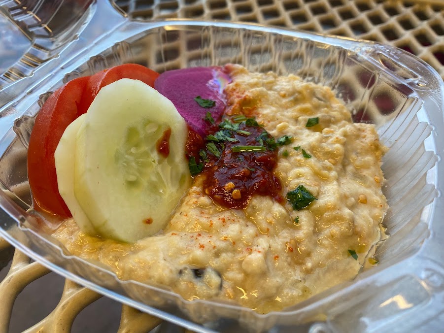 The outdoor seating area at Falafel’s Drive In is designed to offer a pleasant dining experience. Patrons are welcomed to enjoy the meals in a space that combines comfort and a relaxed atmosphere. The area is equipped with ample seating arrangements that accommodate both small and large groups. Tables and chairs are placed under a covered terrace, providing protection from the elements while allowing guests to enjoy fresh air. The seating area is maintained to ensure cleanliness and comfort, and it is frequently praised for its inviting ambiance. The outdoor setting is particularly appreciated during pleasant weather, making it an ideal choice for those who prefer dining al fresco. The design of the space ensures that the natural surroundings can be enjoyed while savoring meals from the extensive menu. Whether it’s the crisp falafels or the refreshing banana milkshake, each dish can be enjoyed in a relaxed and casual environment.